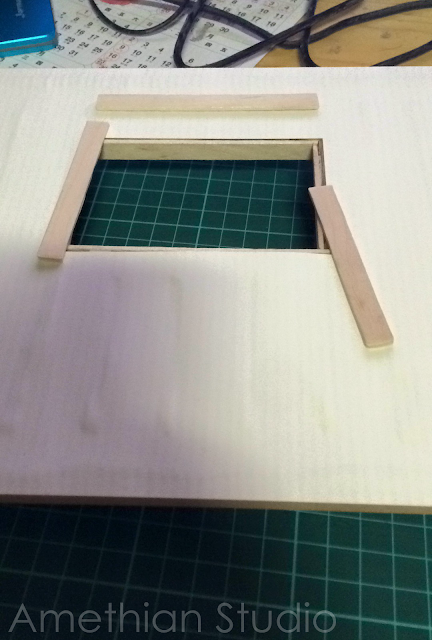 | 鑿穿一塊板並沒有想象中容易。 理想是鋸出大約的窗口大小再用砂紙補好,現實?就是這樣…… |