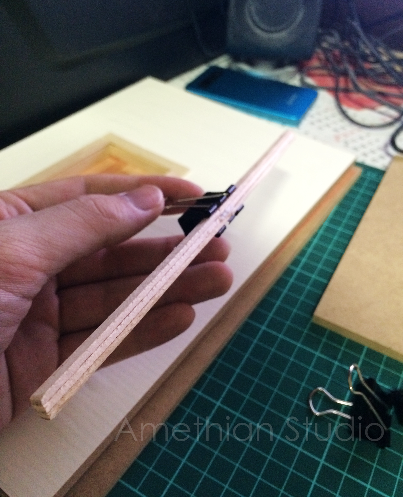 右下:加上由飛機木製成的外板,量度位置時也要萬分小心,