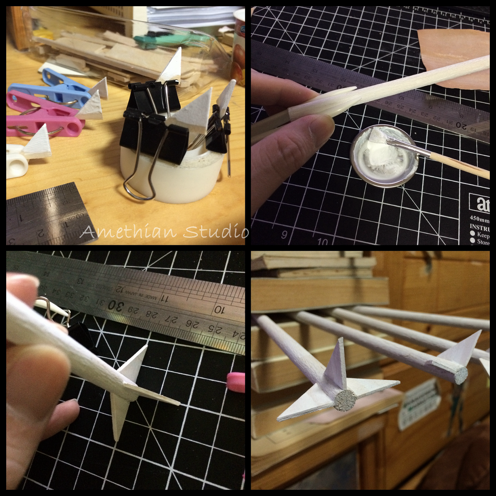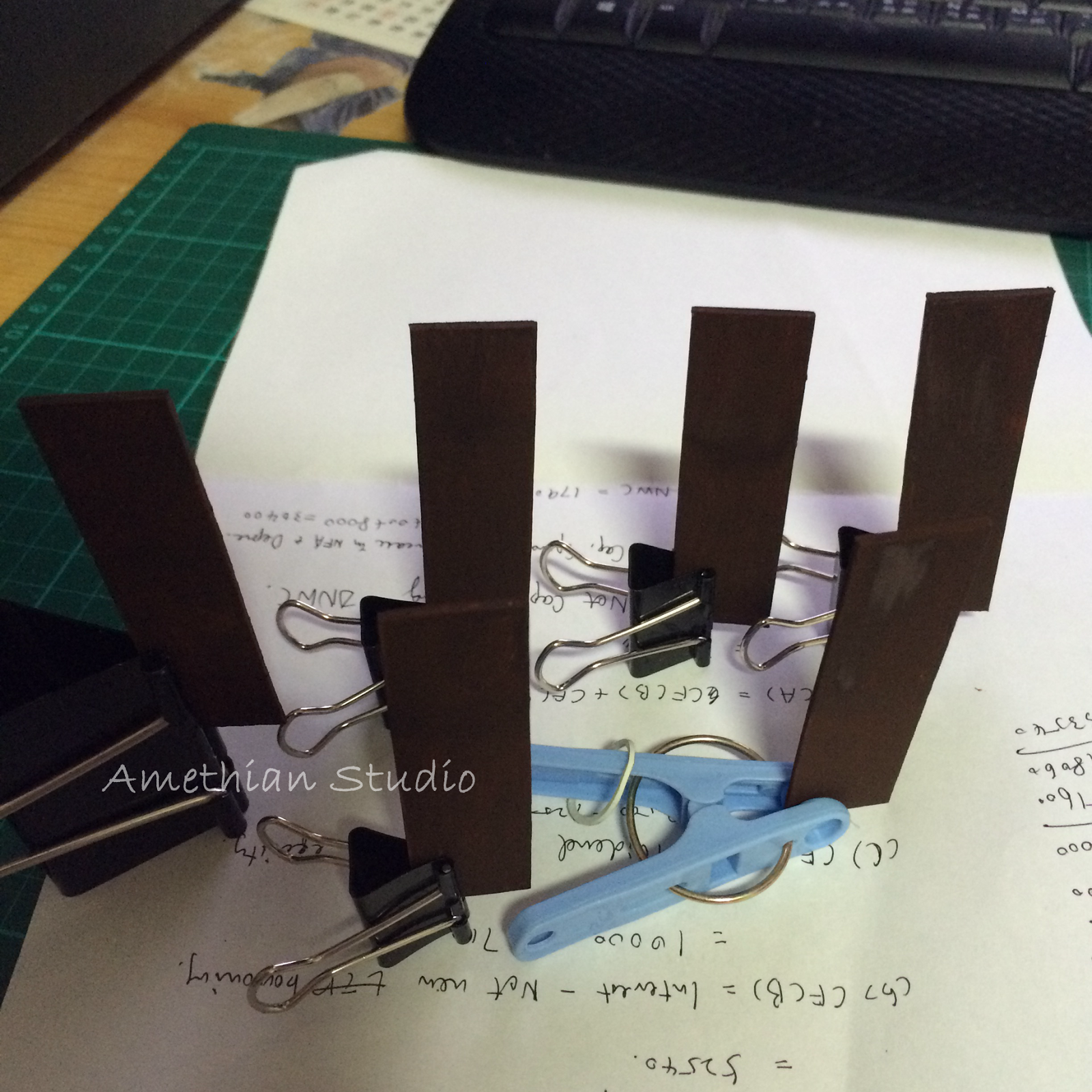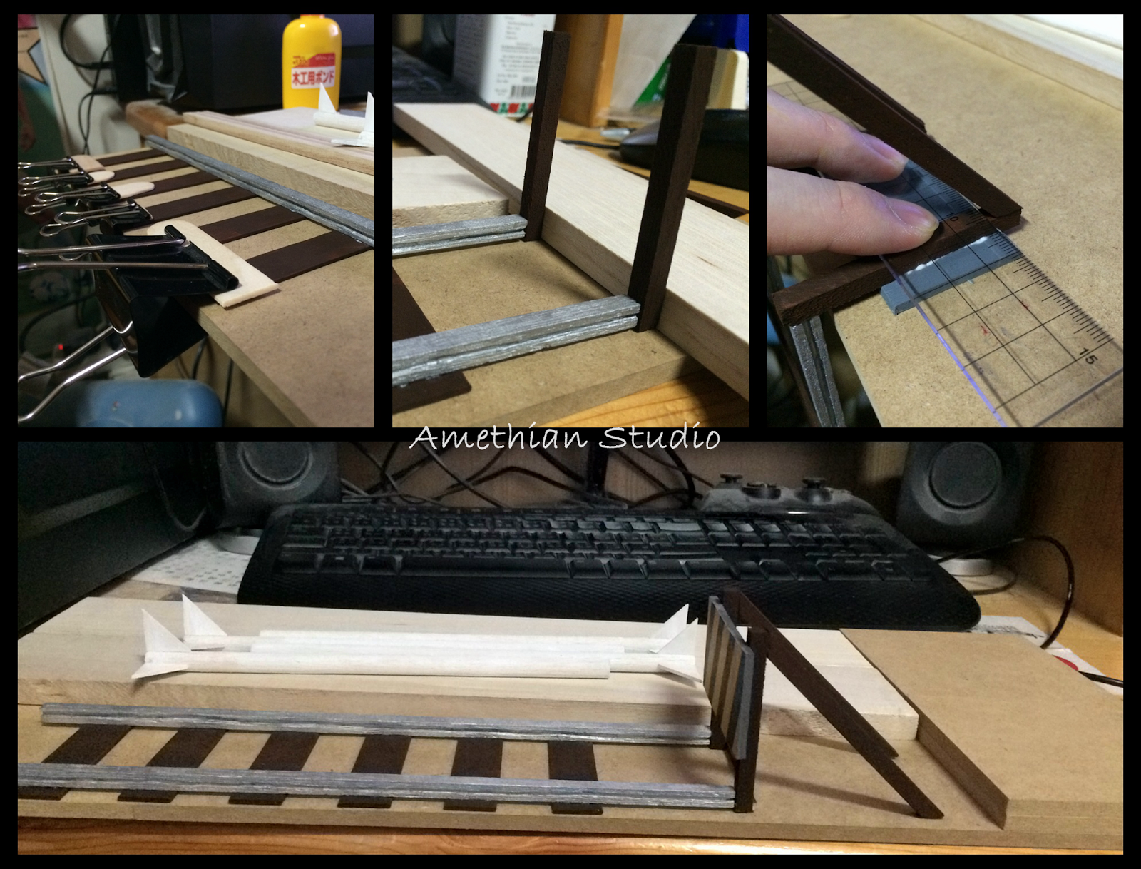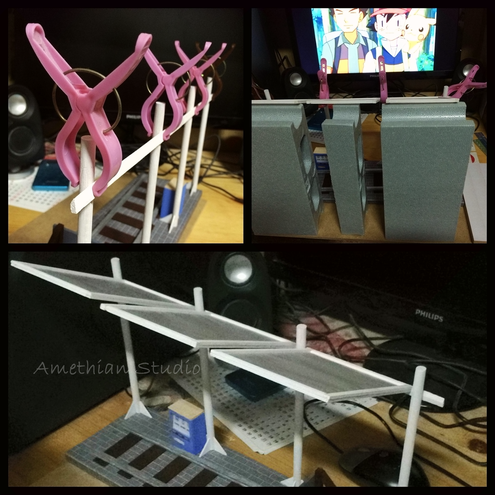 ▲ 固定橫樑,黏上共三組頂部,用同等高度的發泡膠頂住一晚。醒來一看,成型鳥。 |