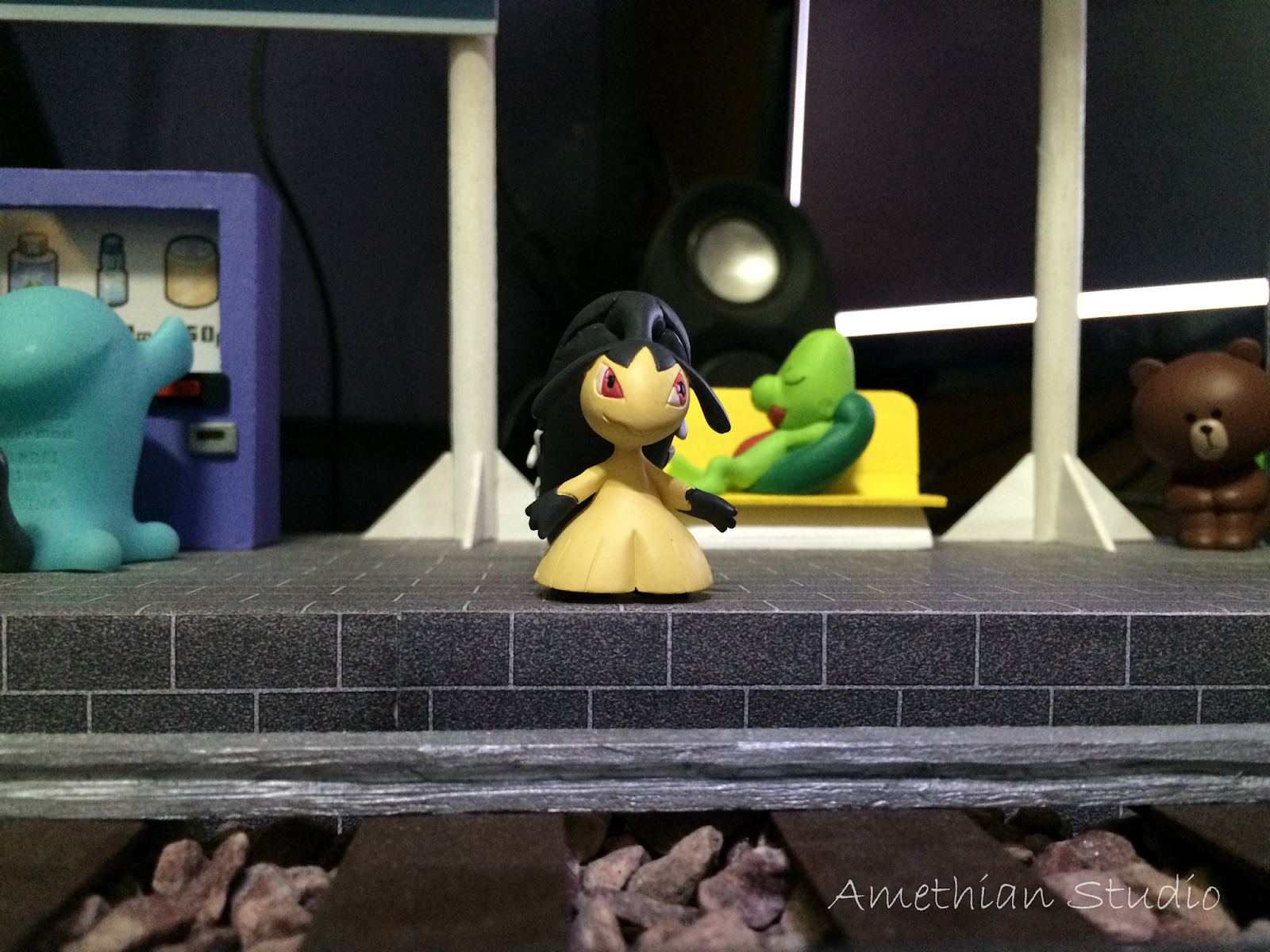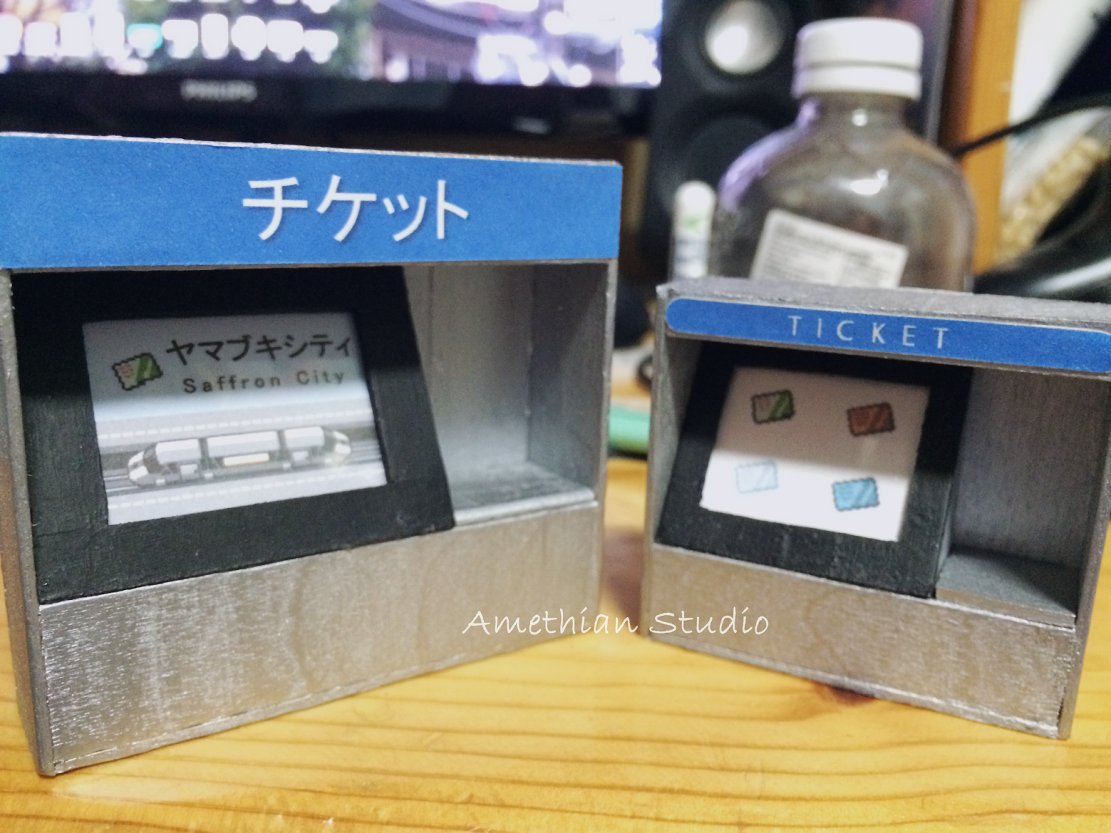 ▲ 自動販賣機。決定蓋車站之後第一樣想到要加入的東西。賣的是 Pokemon 遊戲中有售的 おいしいみず、サイコソーダ 和 ミックスオレ。 |