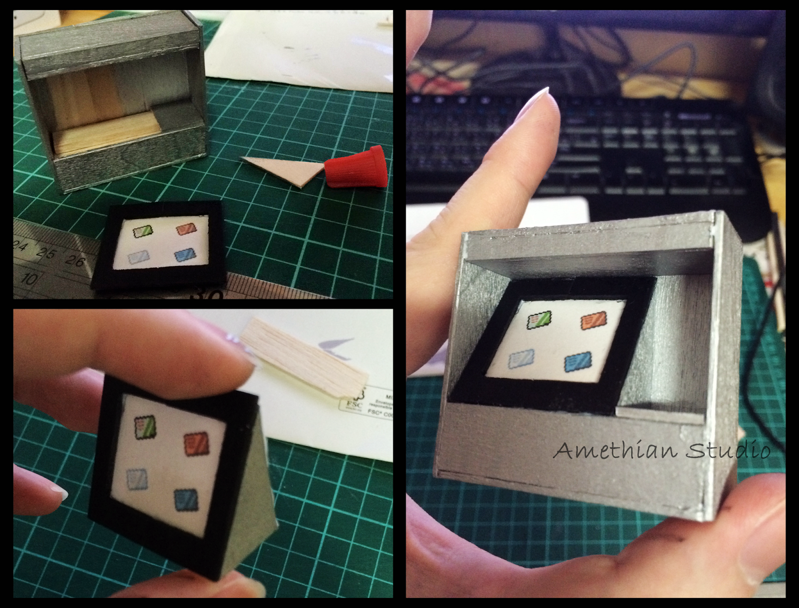 ▲ 舊的自動販賣機不合比例。造一個新的吧。高度由 5cm 提升到 6.5cm,因為表面積增大的關係,可以著眼於較仔細的部位。售賣的東西則維持不變 XD |