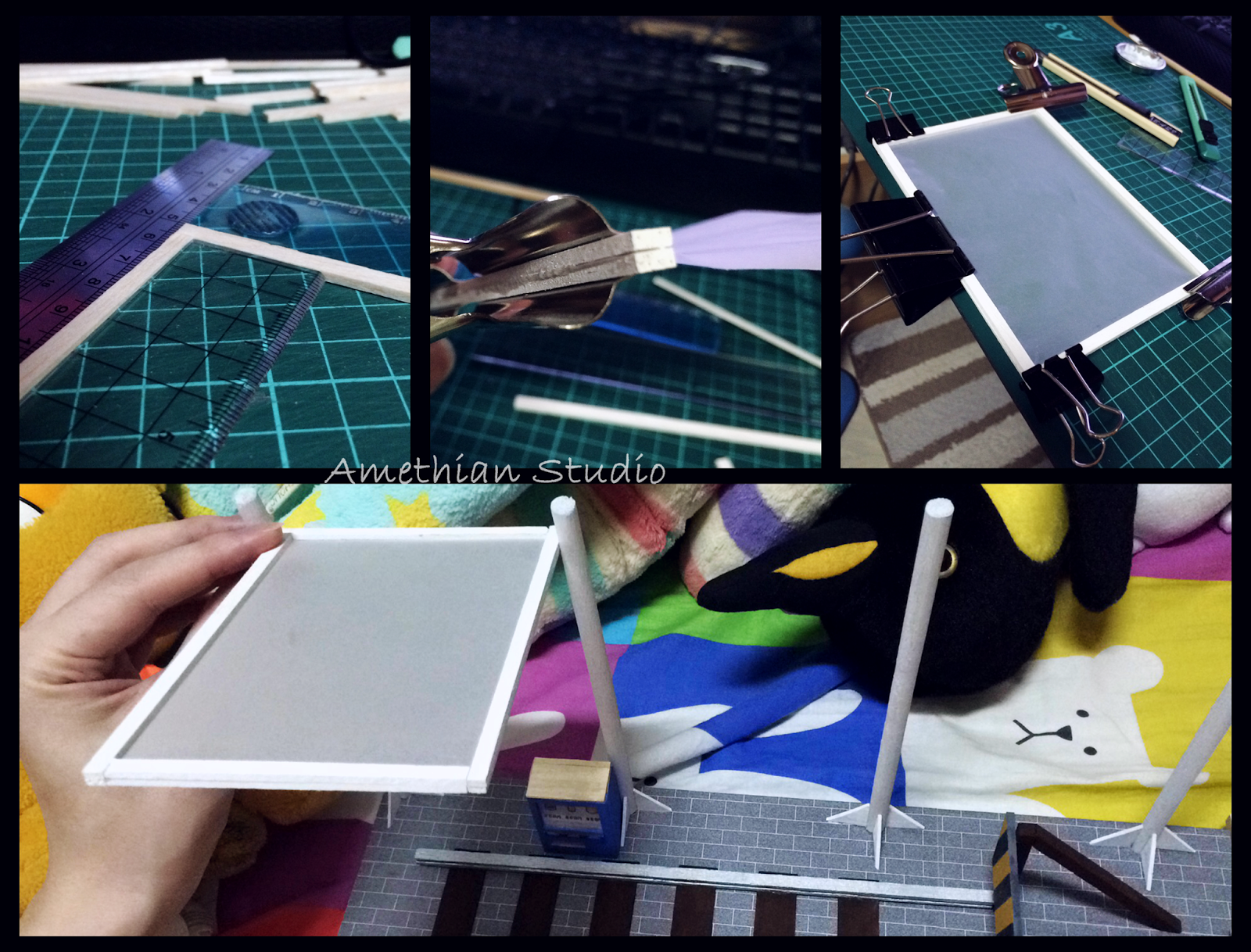 ▲ 頂部。用牛油紙是為了達到透光的效果。每邊用兩條木條夾往,黏好再用重物壓住,確保不會變形。比想象中繁複。 |