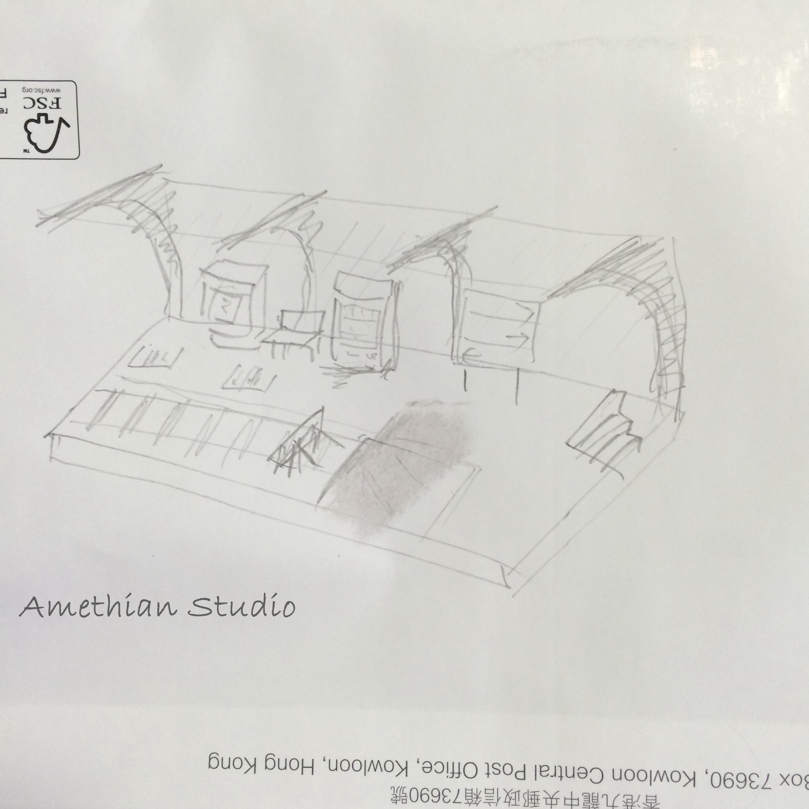 下:有想過加上如圖的背景,可是因為在相簿內始終找不到合適的背景圖片而作罷。右邊的樓梯最終也沒有用到。 |